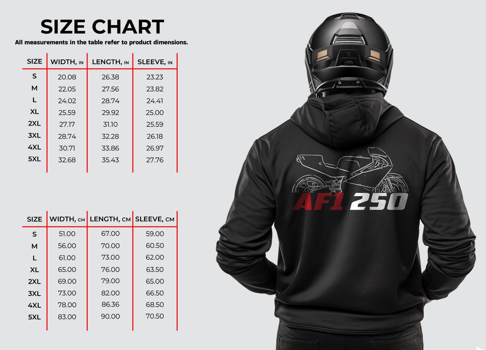Hoodies for Aprilia AF1 250 Motorcycle RidersStay warm while riding your motorcycle with this high-quality hooded pullover hoodie inspired by the Aprilia AF1 250 and designed to be the perfect source of warmth and comfort during your motorcycle journeys.This hoodie serves as the ultimate homage to these legendary motorcycles that have stolen the hearts of riders worldwide. Crafted with a three-panel fleece lining, this pullover hoodie ensures durability as you ride. Double stitched for added strength, it offers ample room for your moto riding movements.Whether you're a dedicated enthusiast of this bike or simply a lover of motorcycles, this biker hoodie is an excellent way to express your affection for these iconic bikes. With a variety of sizes to choose from, it also makes an ideal gift for any motorcycle rider.Why wait? Get your hoodie today and savor the epitome of style, comfort, and adventure! This stylish biker hoodie is a great way to upgrade your bike life and stands out as one of the finest gifts for motorcycle riders, motorbike aficionados and motorcycle fans.Unisex Classic Pullover Hoodie:- Classic fit