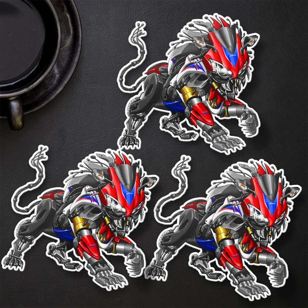 Stickers for Honda CBR 1000RR Motorcycle Riders Do you ride a Honda CBR 1000RR ? Take a look at our collection of stickers inspired by this iconic bike. These kiss-cut decals are meticulously designed to replicate all the details and colors of this iconic motorbike. 🏍💨In our store, you can also find motorcycle apparel and other merchandise with this design, such as t-shirts, hoodies and more. We offer a wide range of motorcycle models and colors in various styles, from realistic motorcycle designs to dragon and animal-themed bikes. We are ready to create any moto design you desire upon request.Our motorcycle apparel makes for an excellent gift, whether it's for yourself or a fellow motorcycle enthusiast 🎁 A decal, sticker, hoodie or moto tee shirt is a great way to upgrade your bike life and stands out as one of the finest gifts for motorcycle riders, motorbike aficionados and motorcycle fans. You can find motorcycle clothing and more in our store.Now let's talk about the set of 3 stickers:Key features:-Material: White vinyl with a satin finish