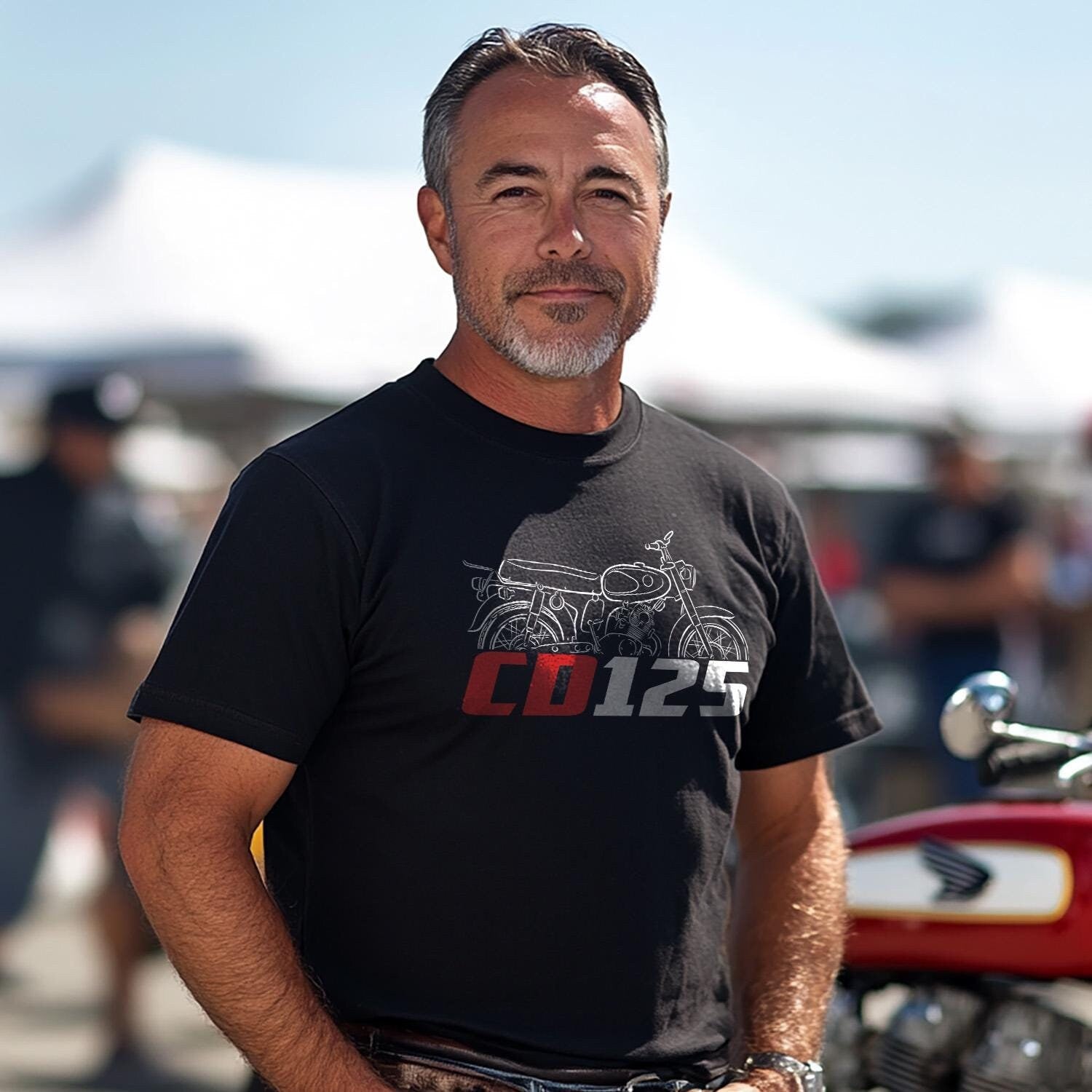 T-Shirts for Honda CD125 Motorcycle RidersDo you ride a motorcycle? Check out our t-shirts inspired by the Honda CD125This high-quality shirt is designed to be the perfect combination of style and comfort during your motorcycle journeys. Inspired by this iconic bike, this tee shirt serves as the ultimate homage to these legendary motorcycles that have stolen the hearts of riders worldwide. You can also find hoodies with these same designs in our shop. This classic unisex short sleeve biker shirt offers ample room for your motorcycle riding movements. The soft cotton and quality print will make you fall in love with it over and over again. It comes with ribbed knit collars for enhanced shaping. Shoulder taping ensures a better fit over time, and dual side seams maintain the garment's shape for the long haul. Whether you're a dedicated enthusiast of this bike or simply a lover of motorcycles, this biker tee is an excellent way to express your affection for these iconic bikes. With a variety of sizes to choose from, this shirt also makes an ideal gift for any motorcycle rider. Why wait? Get your motorcycle TShirt today and savor the epitome of style, comfort, and adventure! This stylish biker shirt is a great way to upgrade your bike life and stands out as one of the finest gifts for motorcycle riders, motorbike aficionados and motorcycle fans.Classic Unisex Short Sleeve Motorcycle T-Shirt: - Available in sizes Small to 5XL