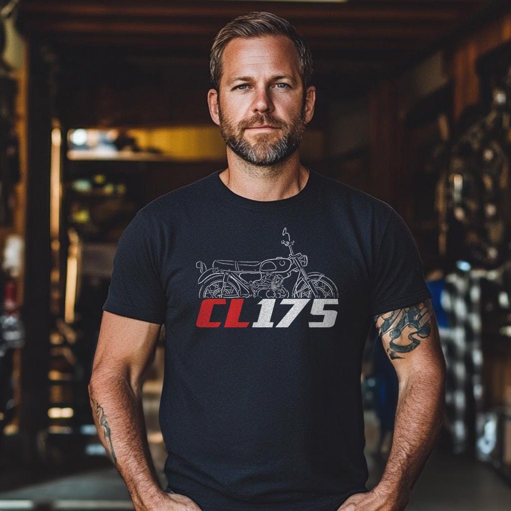 T-Shirts for Honda CL175 Motorcycle RidersDo you ride a motorcycle? Check out our t-shirts inspired by the Honda CL175This high-quality shirt is designed to be the perfect combination of style and comfort during your motorcycle journeys. Inspired by this iconic bike, this tee shirt serves as the ultimate homage to these legendary motorcycles that have stolen the hearts of riders worldwide. You can also find hoodies with these same designs in our shop. This classic unisex short sleeve biker shirt offers ample room for your motorcycle riding movements. The soft cotton and quality print will make you fall in love with it over and over again. It comes with ribbed knit collars for enhanced shaping. Shoulder taping ensures a better fit over time, and dual side seams maintain the garment's shape for the long haul. Whether you're a dedicated enthusiast of this bike or simply a lover of motorcycles, this biker tee is an excellent way to express your affection for these iconic bikes. With a variety of sizes to choose from, this shirt also makes an ideal gift for any motorcycle rider. Why wait? Get your motorcycle TShirt today and savor the epitome of style, comfort, and adventure! This stylish biker shirt is a great way to upgrade your bike life and stands out as one of the finest gifts for motorcycle riders, motorbike aficionados and motorcycle fans.Classic Unisex Short Sleeve Motorcycle T-Shirt: - Available in sizes Small to 5XL