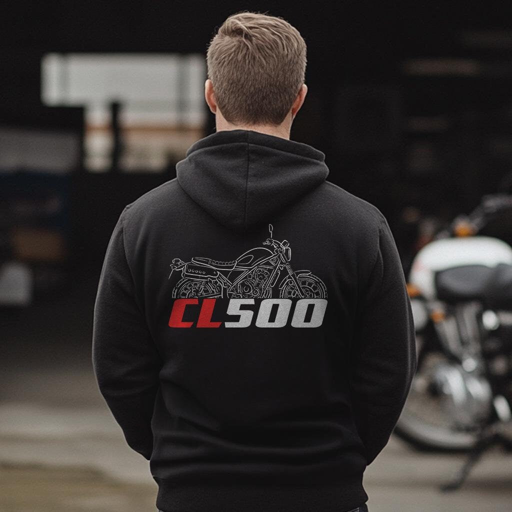 Hoodie for Honda CL500 Motorcycle RidersStay warm while riding your motorcycle with this high-quality hooded pullover inspired by the Honda CL500 and designed to be the perfect source of warmth and comfort during your motorcycle journeys.This hoodie serves as the ultimate homage to these legendary motorcycles that have stolen the hearts of riders worldwide. Crafted with a three-panel fleece lining, this pullover hoodie ensures durability as you ride. Double stitched for added strength, it offers ample room for your riding movements. You can also find t-shirts with this same design in our shop.Whether you're a dedicated enthusiast of this bike or simply a lover of motorcycles, this hoodie is an excellent way to express your affection for these iconic bikes. With a variety of sizes to choose from, it also makes an ideal gift for any motorcycle rider or motorcycle enthusiast.Why wait? Get your motorcycle hoodie today and savor the epitome of style, comfort, and adventure! This stylish hoodie is a great way to upgrade your bike life and stands out as one of the finest gifts for motorcycle riders, motorbike aficionados, motorcycle fans and lovers of motorcycle gear.Unisex Classic Pullover Hoodie:- Classic fit