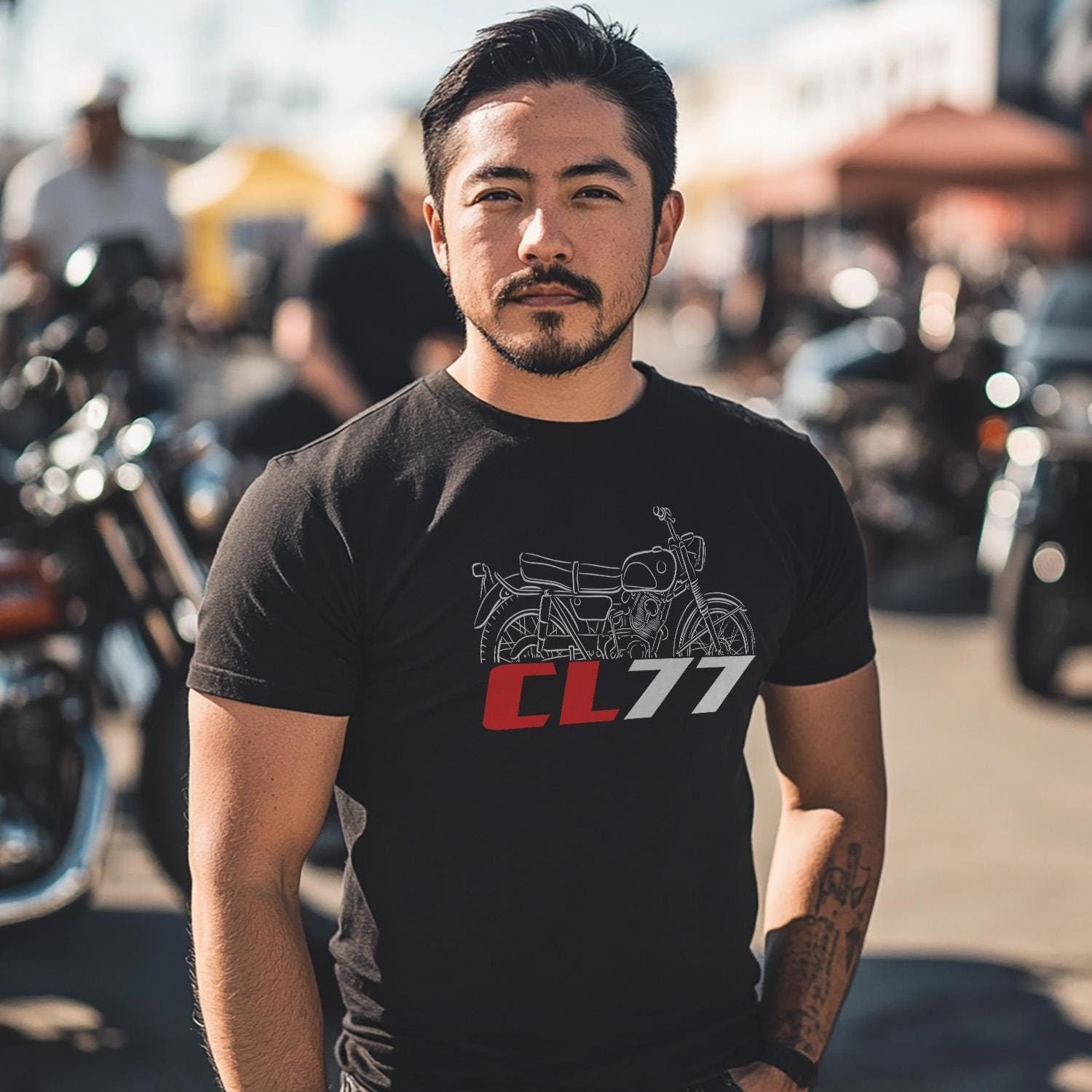 T-Shirts for Honda CL77 Motorcycle RidersDo you ride a motorcycle? Check out our t-shirts inspired by the Honda CL77This high-quality shirt is designed to be the perfect combination of style and comfort during your motorcycle journeys. Inspired by this iconic bike, this tee shirt serves as the ultimate homage to these legendary motorcycles that have stolen the hearts of riders worldwide. You can also find hoodies with these same designs in our shop. This classic unisex short sleeve biker shirt offers ample room for your motorcycle riding movements. The soft cotton and quality print will make you fall in love with it over and over again. It comes with ribbed knit collars for enhanced shaping. Shoulder taping ensures a better fit over time, and dual side seams maintain the garment's shape for the long haul. Whether you're a dedicated enthusiast of this bike or simply a lover of motorcycles, this biker tee is an excellent way to express your affection for these iconic bikes. With a variety of sizes to choose from, this shirt also makes an ideal gift for any motorcycle rider. Why wait? Get your motorcycle TShirt today and savor the epitome of style, comfort, and adventure! This stylish biker shirt is a great way to upgrade your bike life and stands out as one of the finest gifts for motorcycle riders, motorbike aficionados and motorcycle fans.Classic Unisex Short Sleeve Motorcycle T-Shirt: - Available in sizes Small to 5XL