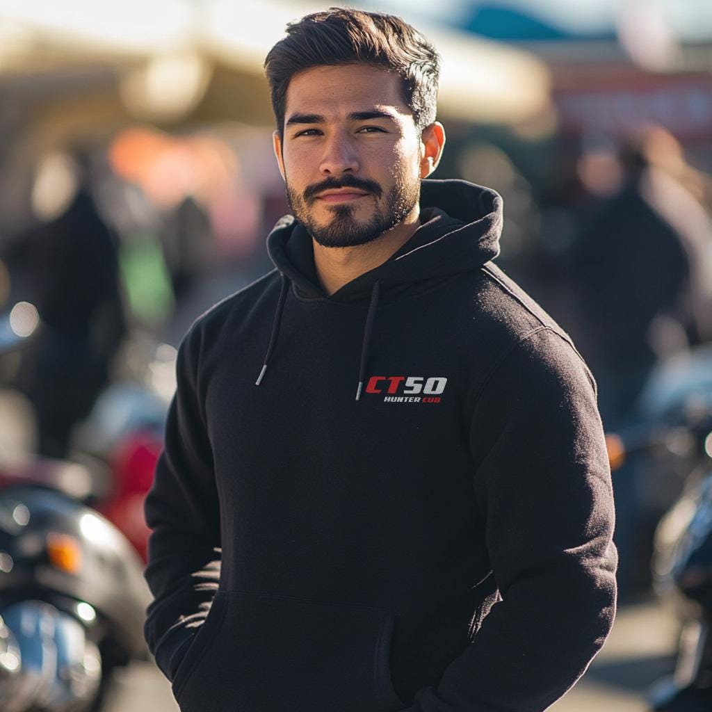 Hoodie for Honda CT50 Inspired Motorcycle RidersStay warm while riding your motorcycle with this high-quality hooded pullover inspired by the Honda CT50 and designed to be the perfect source of warmth and comfort during your motorcycle journeys.This hoodie serves as the ultimate homage to these legendary motorcycles that have stolen the hearts of riders worldwide. Crafted with a three-panel fleece lining, this pullover hoodie ensures durability as you ride. Double stitched for added strength, it offers ample room for your riding movements. You can also find t-shirts with this same design in our shop.Whether you're a dedicated enthusiast of this bike or simply a lover of motorcycles, this hoodie is an excellent way to express your affection for these iconic bikes. With a variety of sizes to choose from, it also makes an ideal gift for any motorcycle rider or motorcycle enthusiast.Why wait? Get your motorcycle hoodie today and savor the epitome of style, comfort, and adventure! This stylish hoodie is a great way to upgrade your bike life and stands out as one of the finest gifts for motorcycle riders, motorbike aficionados, motorcycle fans and lovers of motorcycle gear.Unisex Classic Pullover Hoodie:- Classic fit
