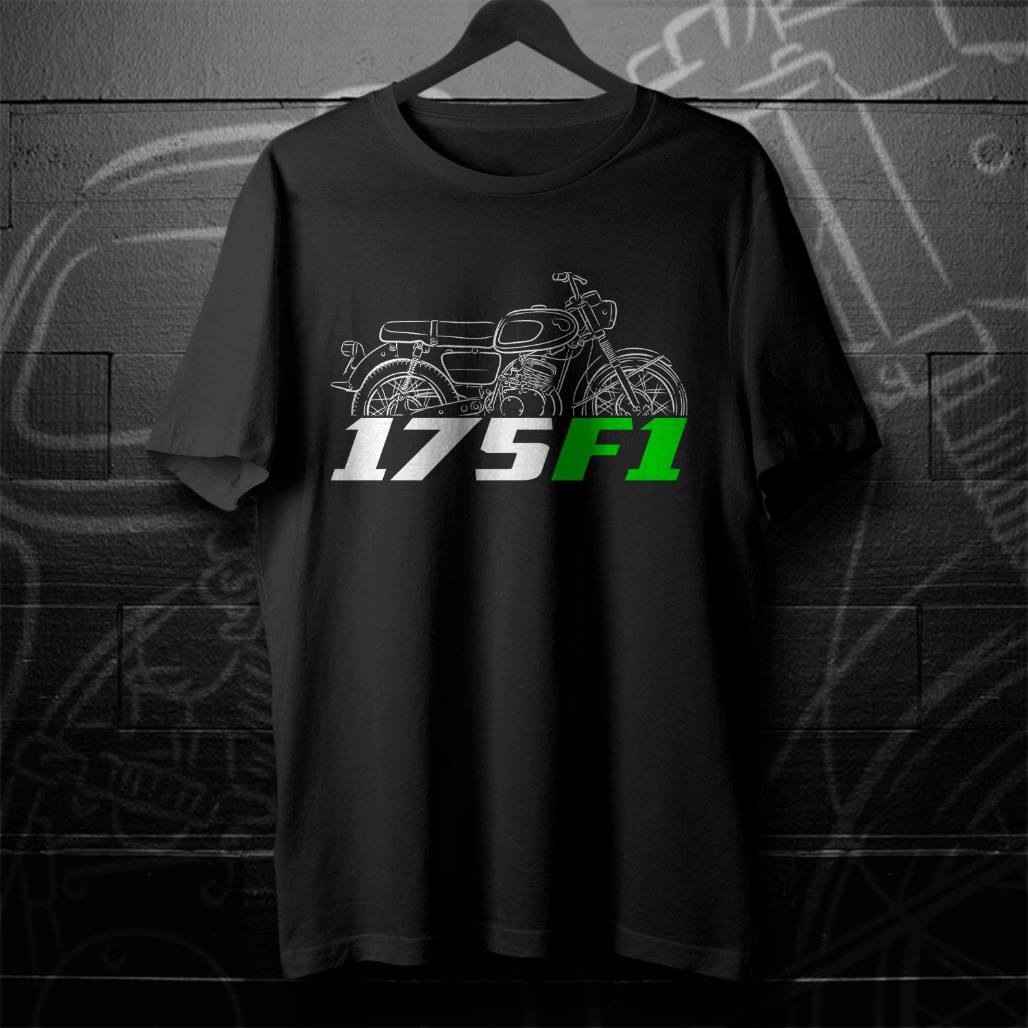 T-Shirts for Kawasaki 175 F1 1966 Motorcycle RidersDo you ride a motorcycle? Check out our t-shirts inspired by this iconic bikeThis high-quality shirt is designed to be the perfect combination of style and comfort during your motorcycle journeys. This tee shirt serves as the ultimate homage to these legendary motorcycles that have stolen the hearts of riders worldwide. You can also find hoodies with these same designs in our shop. This classic unisex short sleeve biker shirt offers ample room for your motorcycle riding movements. The soft cotton and quality print will make you fall in love with it over and over again. It comes with ribbed knit collars for enhanced shaping. Shoulder taping ensures a better fit over time, and dual side seams maintain the garment's shape for the long haul. Whether you're a dedicated enthusiast of this bike or simply a lover of motorcycles, this biker tee is an excellent way to express your affection for these iconic bikes. With a variety of sizes to choose from, this shirt also makes an ideal gift for any motorcycle rider. Why wait? Get your motorcycle TShirt today and savor the epitome of style, comfort, and adventure! This stylish biker shirt is a great way to upgrade your bike life and stands out as one of the finest gifts for motorcycle riders, motorbike aficionados and motorcycle fans.Classic Unisex Short Sleeve Motorcycle T-Shirt: - Available in sizes Small to 5XL