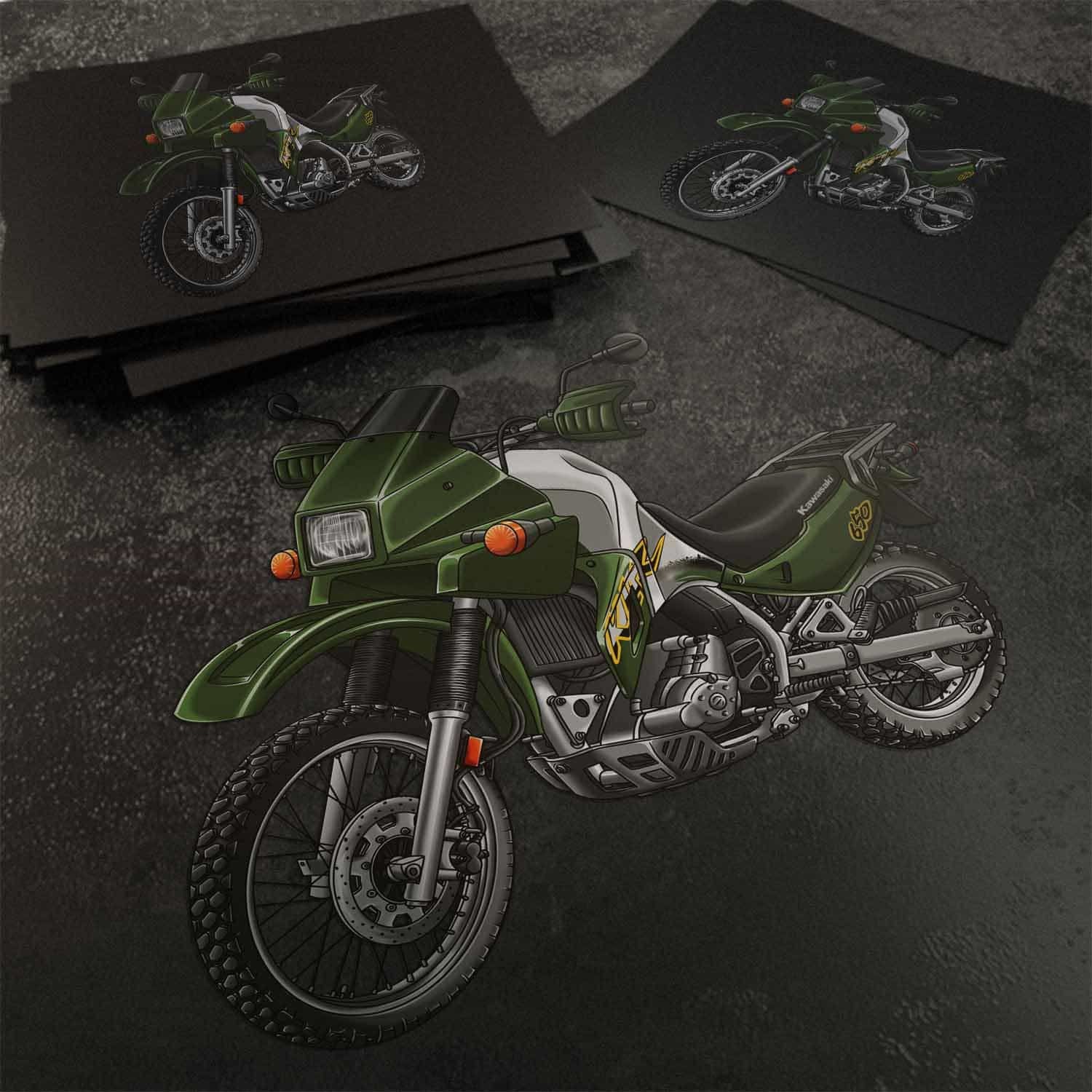 Stickers for Kawasaki KLR 650 A Motorcycle Riders Do you ride a Kawasaki KLR 650 A ? Take a look at our collection of Kawasaki KLR 650 A stickers. These kiss-cut decals are meticulously designed to replicate all the details and colors of this iconic motorbike. 🏍💨In our store, you can also find motorcycle apparel and other merchandise with this design, such as t-shirts, hoodies and more. We offer a wide range of motorcycle models and colors in various styles, from realistic motorcycle designs to dragon and animal-themed bikes. We are ready to create any moto design you desire upon request.Our motorcycle apparel makes for an excellent gift, whether it's for yourself or a fellow motorcycle enthusiast 🎁 A decal, sticker, hoodie or moto tee shirt is a great way to upgrade your bike life and stands out as one of the finest gifts for motorcycle riders, motorbike aficionados and motorcycle fans. You can find motorcycle clothing and more in our store.Now let's talk about the set of 3 stickers:Key features:-Material: White vinyl with a satin finish