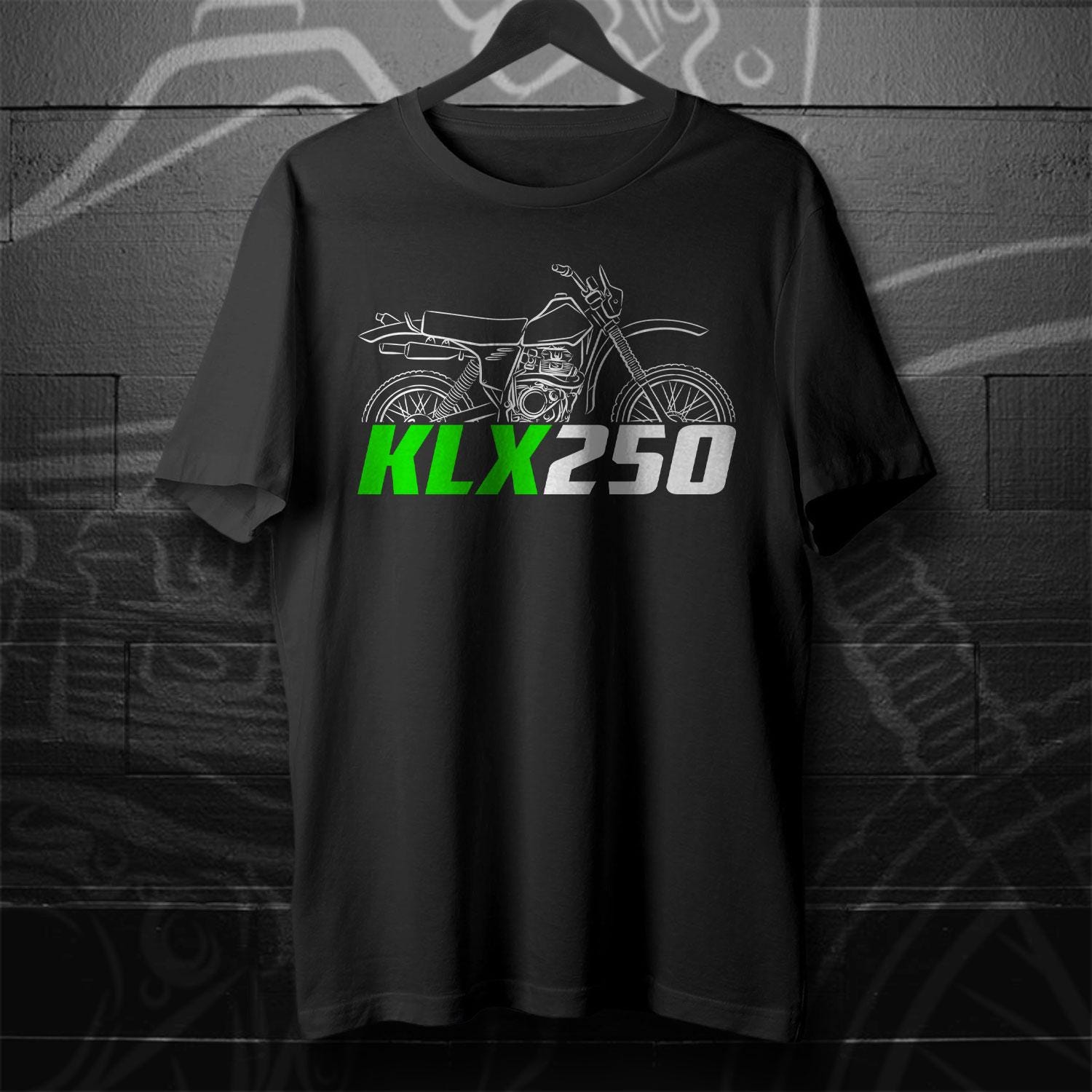T-Shirts for Kawasaki KLX250 Motorcycle RidersDo you ride a motorcycle? Check out our t-shirts inspired by this iconic bike.This high-quality shirt is designed to be the perfect combination of style and comfort during your motorcycle journeys. This tee shirt serves as the ultimate homage to these legendary motorcycles that have stolen the hearts of riders worldwide. You can also find hoodies with these same designs in our shop. This classic unisex short sleeve biker shirt offers ample room for your motorcycle riding movements. The soft cotton and quality print will make you fall in love with it over and over again. It comes with ribbed knit collars for enhanced shaping. Shoulder taping ensures a better fit over time, and dual side seams maintain the garment's shape for the long haul. Whether you're a dedicated enthusiast of this bike or simply a lover of motorcycles, this biker tee is an excellent way to express your affection for these iconic bikes. With a variety of sizes to choose from, this shirt also makes an ideal gift for any motorcycle rider. Why wait? Get your motorcycle TShirt today and savor the epitome of style, comfort, and adventure! This stylish biker shirt is a great way to upgrade your bike life and stands out as one of the finest gifts for motorcycle riders, motorbike aficionados and motorcycle fans.Classic Unisex Short Sleeve Motorcycle T-Shirt: - Available in sizes Small to 5XL