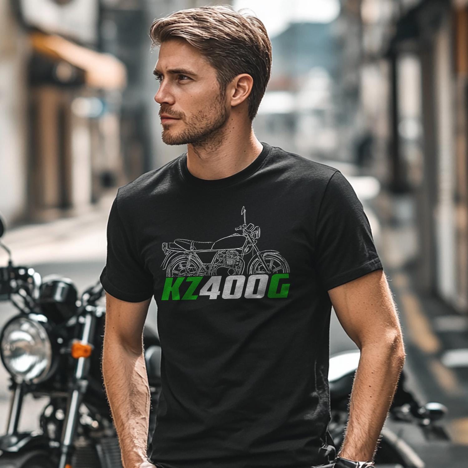 T-Shirts for Kawasaki KZ400G 1980 Motorcycle RidersDo you ride a motorcycle? Check out our t-shirts inspired by this iconic bike.This high-quality shirt is designed to be the perfect combination of style and comfort during your motorcycle journeys.This tee shirt serves as the ultimate homage to these legendary motorcycles that have stolen the hearts of riders worldwide. You can also find hoodies with these same designs in our shop.This classic unisex short sleeve biker shirt offers ample room for your motorcycle riding movements. The soft cotton and quality print will make you fall in love with it over and over again. It comes with ribbed knit collars for enhanced shaping. Shoulder taping ensures a better fit over time, and dual side seams maintain the garment's shape for the long haul.Whether you're a dedicated enthusiast of this bike or simply a lover of motorcycles, this biker tee is an excellent way to express your affection for these iconic bikes. With a variety of sizes to choose from, this shirt also makes an ideal gift for any motorcycle rider.Why wait? Get your motorcycle TShirt today and savor the epitome of style, comfort, and adventure! This stylish biker shirt is a great way to upgrade your bike life and stands out as one of the finest gifts for motorcycle riders, motorbike aficionados and motorcycle fans.Classic Unisex Short Sleeve Motorcycle T-Shirt:- Available in sizes Small to 5XL
