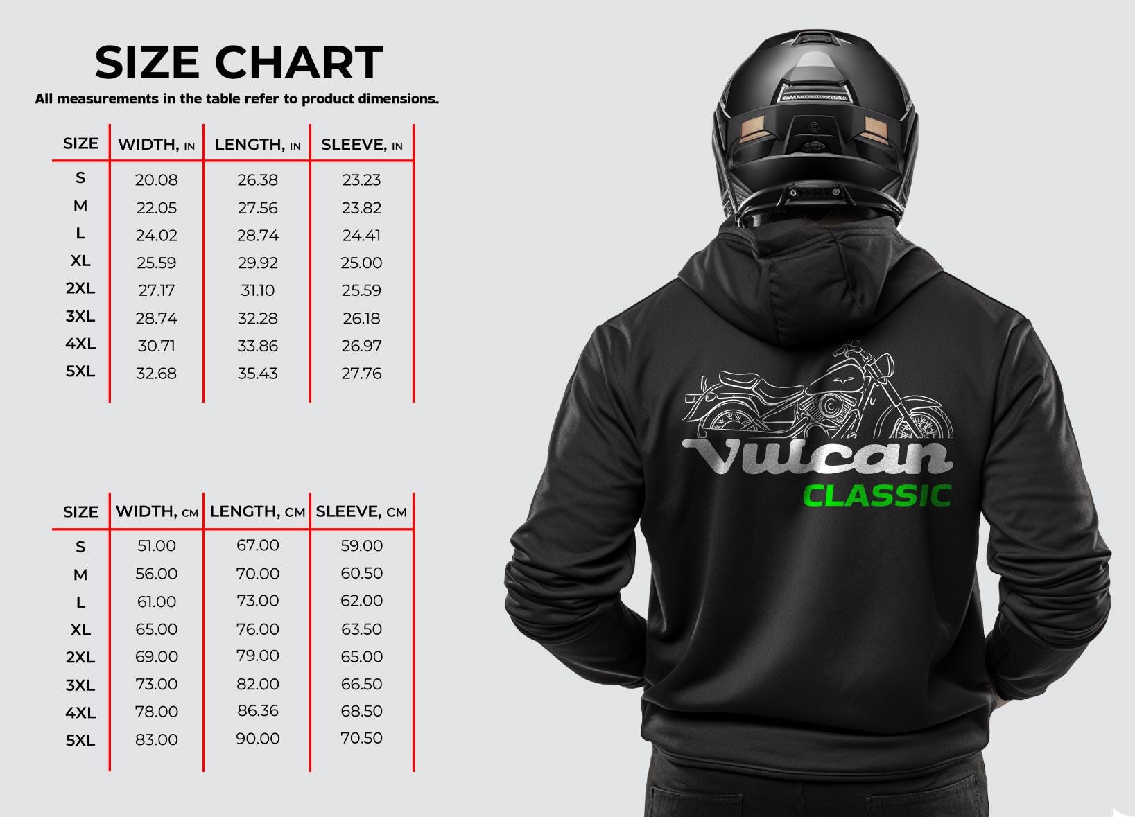 Hoodies for Kawasaki VN400 Vulcan Classic Motorcycle RidersStay warm while riding your motorcycle with this high-quality hoodie pullover inspired by the Kawasaki VN400 Vulcan Classic and designed to be the perfect source of warmth and comfort during your motorcycle journeys.This hoodie serves as the ultimate homage to these legendary motorcycles that have stolen the hearts of riders worldwide. Crafted with a three-panel fleece lining, this pullover hoodie ensures durability as you ride. Double stitched for added strength, it offers ample room for your riding movements. You can also find t-shirts with this same design in our shop.Whether you're a dedicated enthusiast of this bike or simply a lover of motorcycles, this hoodie is an excellent way to express your affection for these iconic bikes. With a variety of sizes to choose from, it also makes an ideal gift for any motorcycle rider or motorcycle enthusiast.Why wait? Get your motorcycle hoodie today and savor the epitome of style, comfort, and adventure! This stylish hoodie is a great way to upgrade your bike life and stands out as one of the finest gifts for motorcycle riders, motorbike aficionados, motorcycle fans and lovers of motorcycle gear.Unisex Classic Pullover Hoodie:- Classic fit