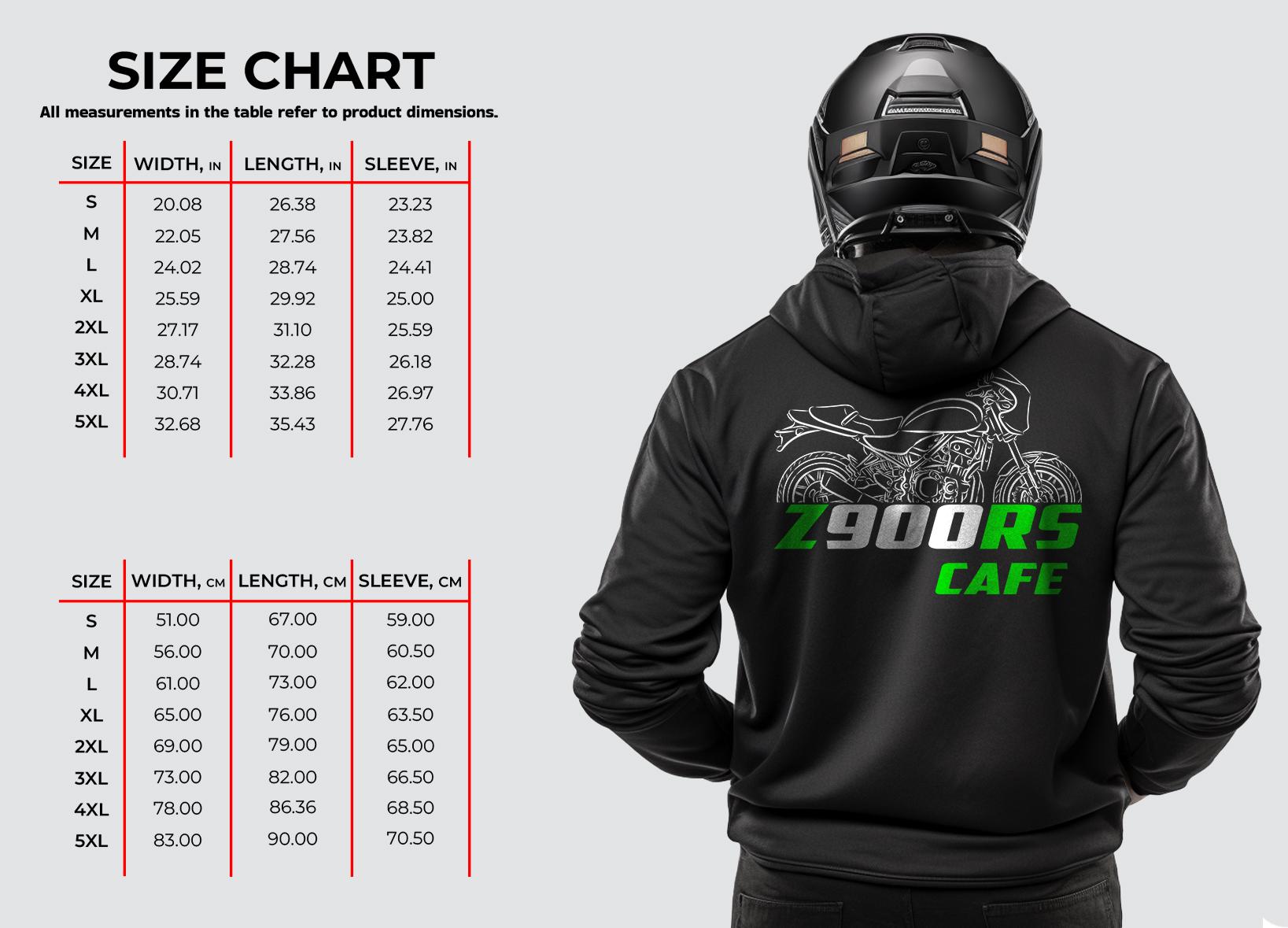 Hoodies for Kawasaki Z900RS Cafe Motorcycle RidersStay warm while riding your motorcycle with this high-quality hoodie pullover inspired by the Kawasaki Z900RS Cafe and designed to be the perfect source of warmth and comfort during your motorcycle journeys.This hoodie serves as the ultimate homage to these legendary motorcycles that have stolen the hearts of riders worldwide. Crafted with a three-panel fleece lining, this pullover hoodie ensures durability as you ride. Double stitched for added strength, it offers ample room for your riding movements. You can also find t-shirts with this same design in our shop.Whether you're a dedicated enthusiast of this bike or simply a lover of motorcycles, this hoodie is an excellent way to express your affection for these iconic bikes. With a variety of sizes to choose from, it also makes an ideal gift for any motorcycle rider or motorcycle enthusiast.Why wait? Get your motorcycle hoodie today and savor the epitome of style, comfort, and adventure! This stylish hoodie is a great way to upgrade your bike life and stands out as one of the finest gifts for motorcycle riders, motorbike aficionados, motorcycle fans and lovers of motorcycle gear.Unisex Classic Pullover Hoodie:- Classic fit