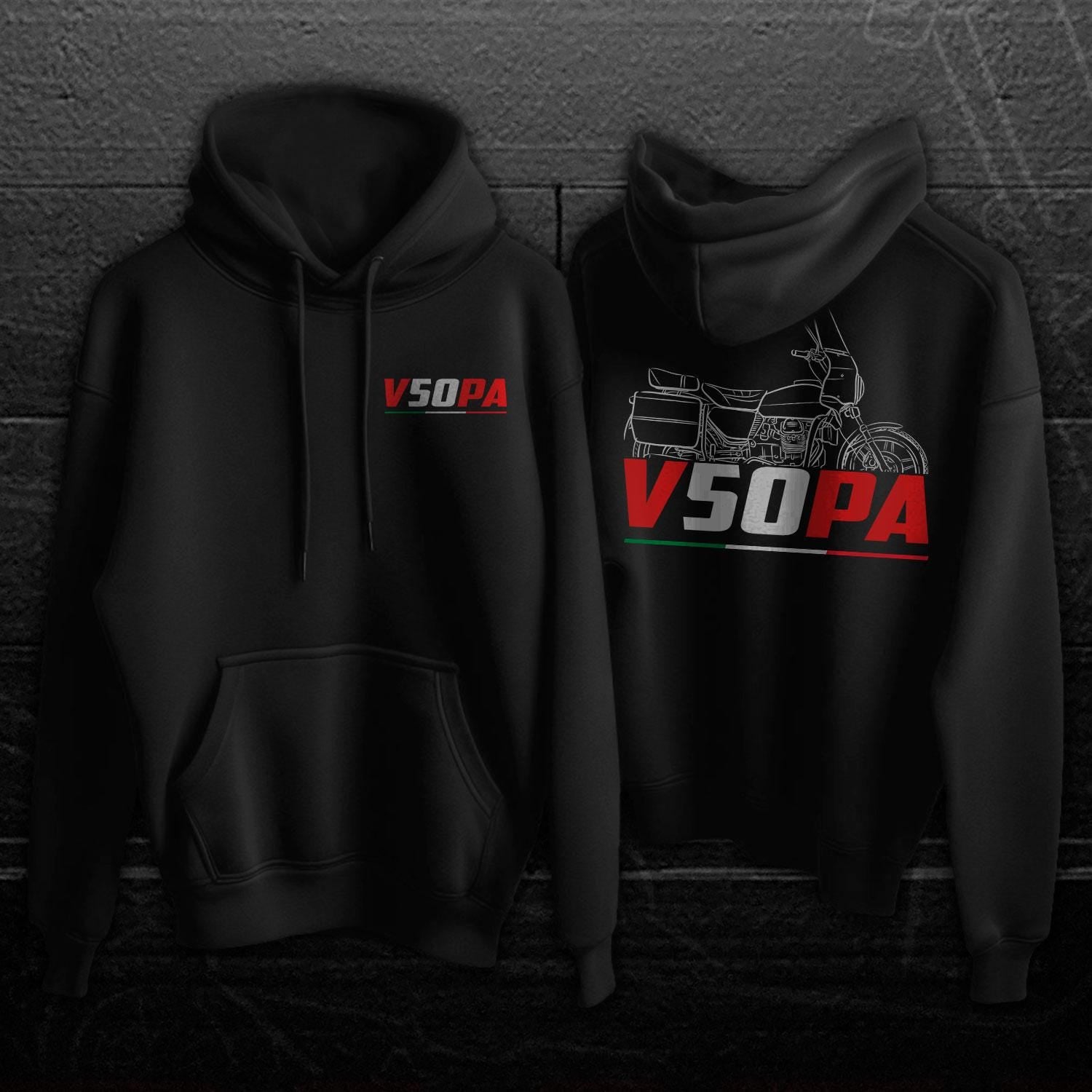 Hoodies for Moto Guzzi V50 PA 1991 Motorcycle RidersStay warm while riding your motorcycle with this high-quality hooded pullover designed to be the perfect source of warmth and comfort during your motorcycle journeys.This hoodie serves as the ultimate homage to these legendary motorcycles that have stolen the hearts of riders worldwide. Crafted with a three-panel fleece lining, this pullover hoodie ensures durability as you ride. Double stitched for added strength, it offers ample room for your riding movements. You can also find t-shirts with this same design in our shop.Whether you're a dedicated enthusiast of this motorcycle model or simply a lover of motorcycles, this hoodie is an excellent way to express your affection for these iconic bikes. With a variety of sizes to choose from, it also makes an ideal gift for any motorcycle rider or motorcycle enthusiast.Why wait? Get your motorcycle hoodie today and savor the epitome of style, comfort, and adventure! This stylish hoodie is a great way to upgrade your bike life and stands out as one of the finest gifts for motorcycle riders, motorbike aficionados, motorcycle fans and lovers of motorcycle gear.Unisex Classic Pullover Hoodie:- Classic fit
