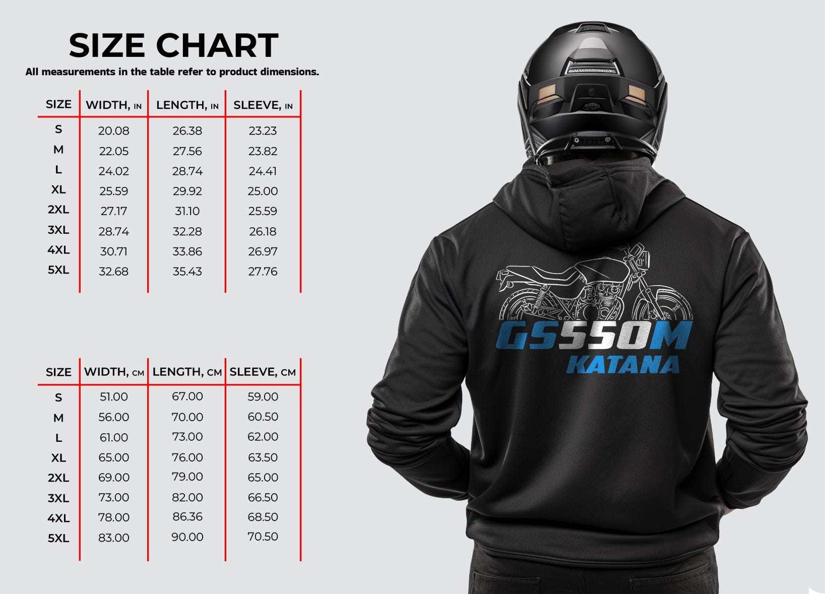 Hoodies for Suzuki GS550 Motorcycle RidersStay warm while riding your motorcycle with this high-quality hooded pullover designed to be the perfect source of warmth and comfort during your motorcycle journeys.Inspired by this iconic bike, this hoodie serves as the ultimate homage to these legendary motorcycles that have stolen the hearts of riders worldwide. Crafted with a three-panel fleece lining, this pullover hoodie ensures durability as you ride. Double stitched for added strength, it offers ample room for your riding movements. You can also find t-shirts with this same design in our shop.Whether you're a dedicated enthusiast of this bike or simply a lover of motorcycles, this hoodie is an excellent way to express your affection for these iconic bikes. With a variety of sizes to choose from, it also makes an ideal gift for any motorcycle rider or motorcycle enthusiast.Why wait? Get your motorcycle hoodie today and savor the epitome of style, comfort, and adventure! This stylish hoodie is a great way to upgrade your bike life and stands out as one of the finest gifts for motorcycle riders, motorbike aficionados, motorcycle fans and lovers of motorcycle gear.Unisex Classic Pullover Hoodie:- Classic fit