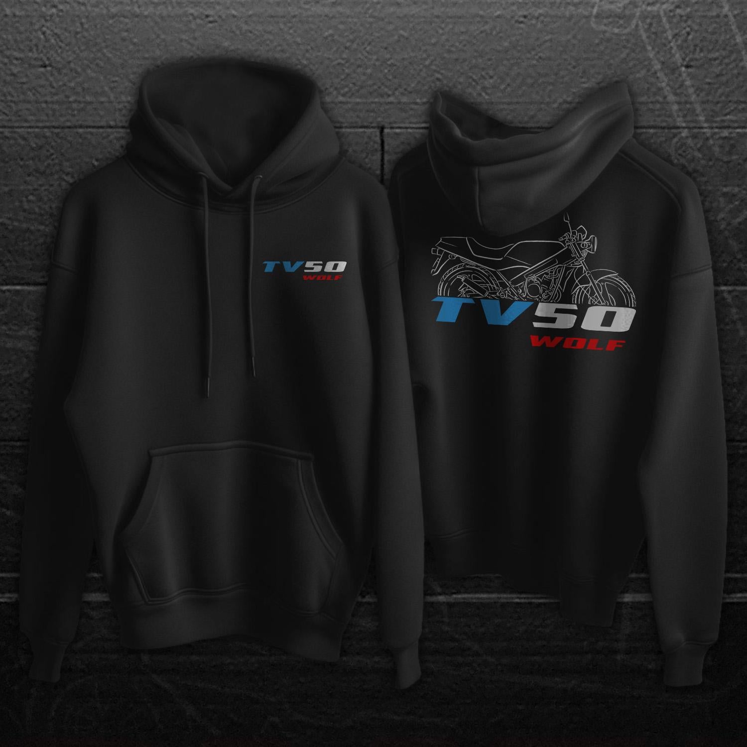 Hoodies for Suzuki TV50 Wolf Motorcycle RidersStay warm while riding your motorcycle with this high-quality hooded pullover designed to be the perfect source of warmth and comfort during your motorcycle journeys.Inspired by iconic bike , this hoodie serves as the ultimate homage to these legendary motorcycles that have stolen the hearts of riders worldwide. Crafted with a three-panel fleece lining, this pullover hoodie ensures durability as you ride. Double stitched for added strength, it offers ample room for your riding movements. You can also find t-shirts with this same design in our shop.Whether you're a dedicated enthusiast of this bike or simply a lover of motorcycles, this hoodie is an excellent way to express your affection for these iconic bikes. With a variety of sizes to choose from, it also makes an ideal gift for any motorcycle rider or motorcycle enthusiast.Why wait? Get your motorcycle hoodie today and savor the epitome of style, comfort, and adventure! This stylish hoodie is a great way to upgrade your bike life and stands out as one of the finest gifts for motorcycle riders, motorbike aficionados, motorcycle fans and lovers of motorcycle gear.Unisex Classic Pullover Hoodie:- Classic fit